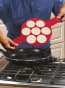 Flippin’ Fantastic the fast, easy and fun way to make perfect pancakes every time! As seen on TV, Flipppin’ Fantastic flips multiple pancakes at the same time and without the mess. Just place in preheated pan add batter and let them brown then simply lift and flip. The secret is the non-stick, silicone ring. The side holds batter to the perfect shape for even cooking, while the flat bottom ring supports everything. Stovetop safe silicone while the easy flip grips keep hand away from the heat. Dishwasher safe. Also great for eggs, omelets, hash browns and so much more!