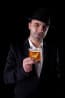 -Briefcase-shaped exterior with cutout-carrying handle adds mobster-style flair