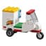 - Pizzeria building measures over 5” high, 4” wide and 4” deep. Delivery scooter measures over 1” high, 2” long and 1” wide