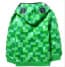 Minecraft Green Hoodie with Creeper block pattern and full zip-up hoodie featuring a Creeper's mouth and eyes (mesh construction for comfort). Includes woven Grass Block clamp label at hem and custom Minecraft zipper pull. Showcases one of the most popular hostile mob characters as seen in Minecraft video game.