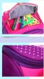 Twilight Sparkle My Little Pony Backpack. Durable fabric backpack features adorable My Little Pony graphics right on the front. Plush 3D Rainbow Dash face and glossy front panel near the top will make her first day of school memorable! Adjustable, padded back straps and padded rear panel will provide extended comfort for your child.