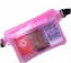 Take this wallet snorkeling, swimming, or boating to hold and protect your I.D., cash, credit cards, keys, phone and more from water damage. This PVC wallet features is available in two colors--pink and blue. It comes with an adjustable strap to attach to your waist. Measurements are 21.5 x 15 cm.